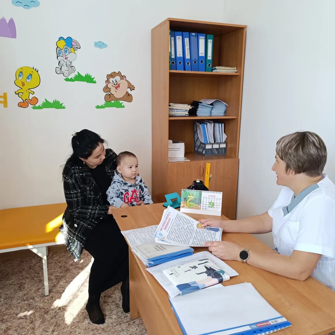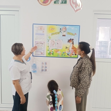 Бүгін бөбекжай-бақшамыздың кеңес беру пунктіне келген анамен жылы жүзді, сенімді әңгіме өрбіді. Әдіскер м.а. Кусмагамбетова У. Р. бөбекжай ішімен таныстырып, Медбике Фурсенко Л. В. екпе туралы кеңестер беріп, аналарға қолдау көрсетті.